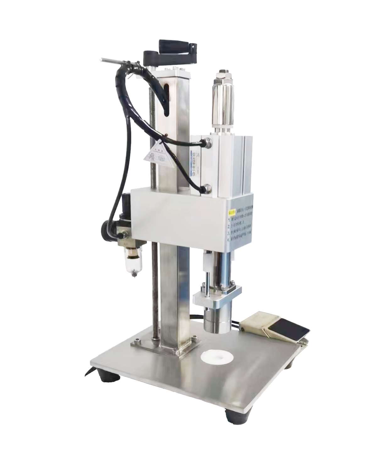 3、實現(xiàn)同款瓶直徑,封口高低可調(diào),無內(nèi)塞自動報警。放瓶和出瓶為同一方向,方便于人員操作。